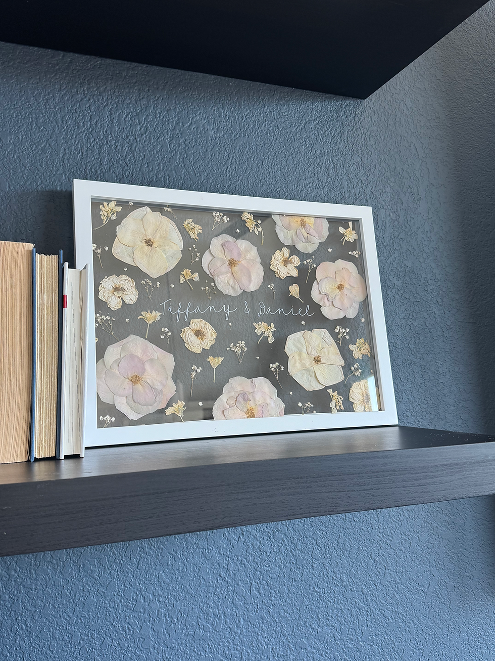 At FlowerPatels, we offer a variety of products that can be created using your bouquet flowers or using our inventory of already-pressed flowers. If we are creating a custom piece using your flowers, please be prepared to wait 2-4 months before your piece is ready. Our flower preservation process alone takes 4-8 weeks to ensure your flowers are fully dry and flat before we then design and frame your special piece.